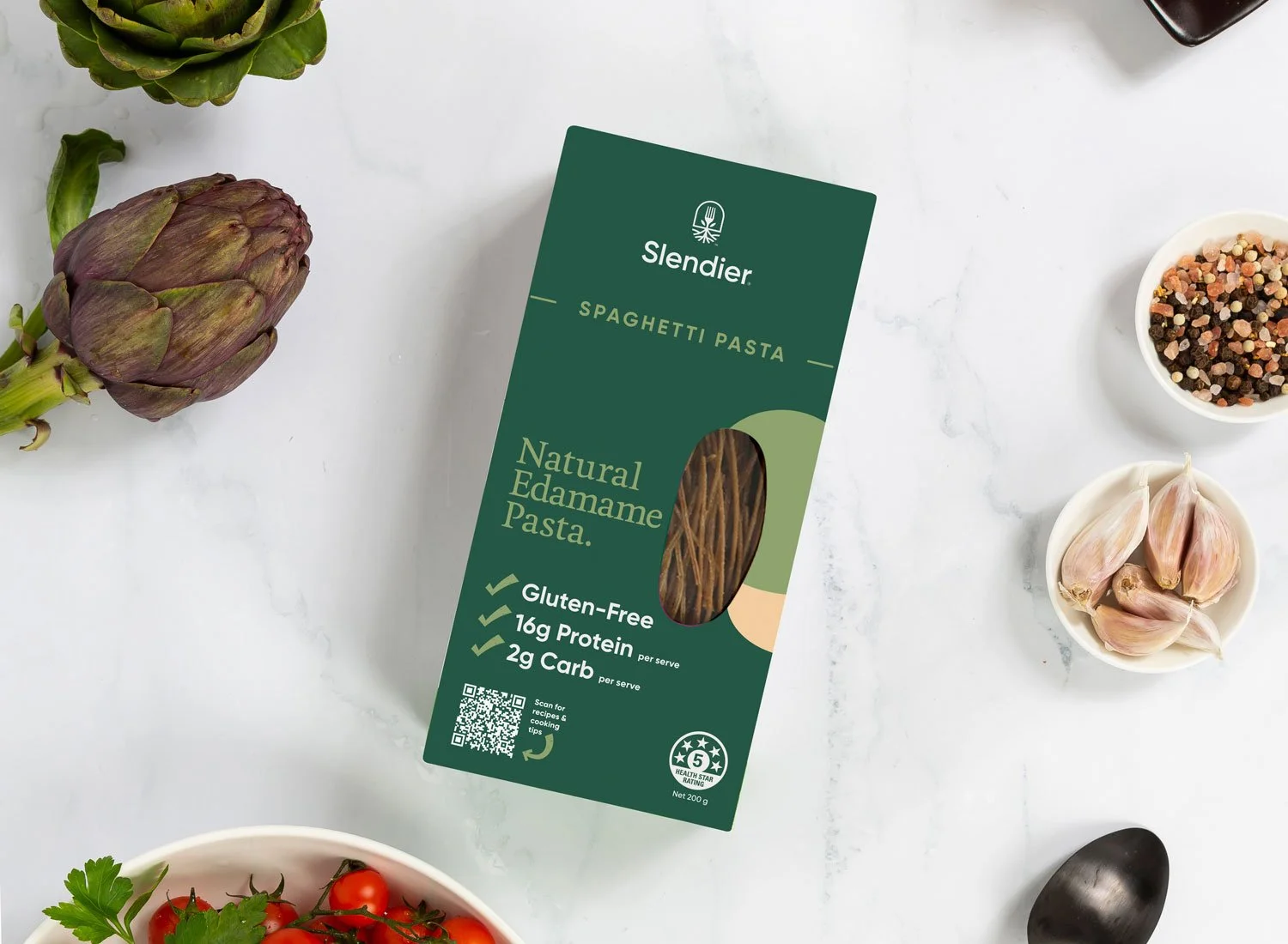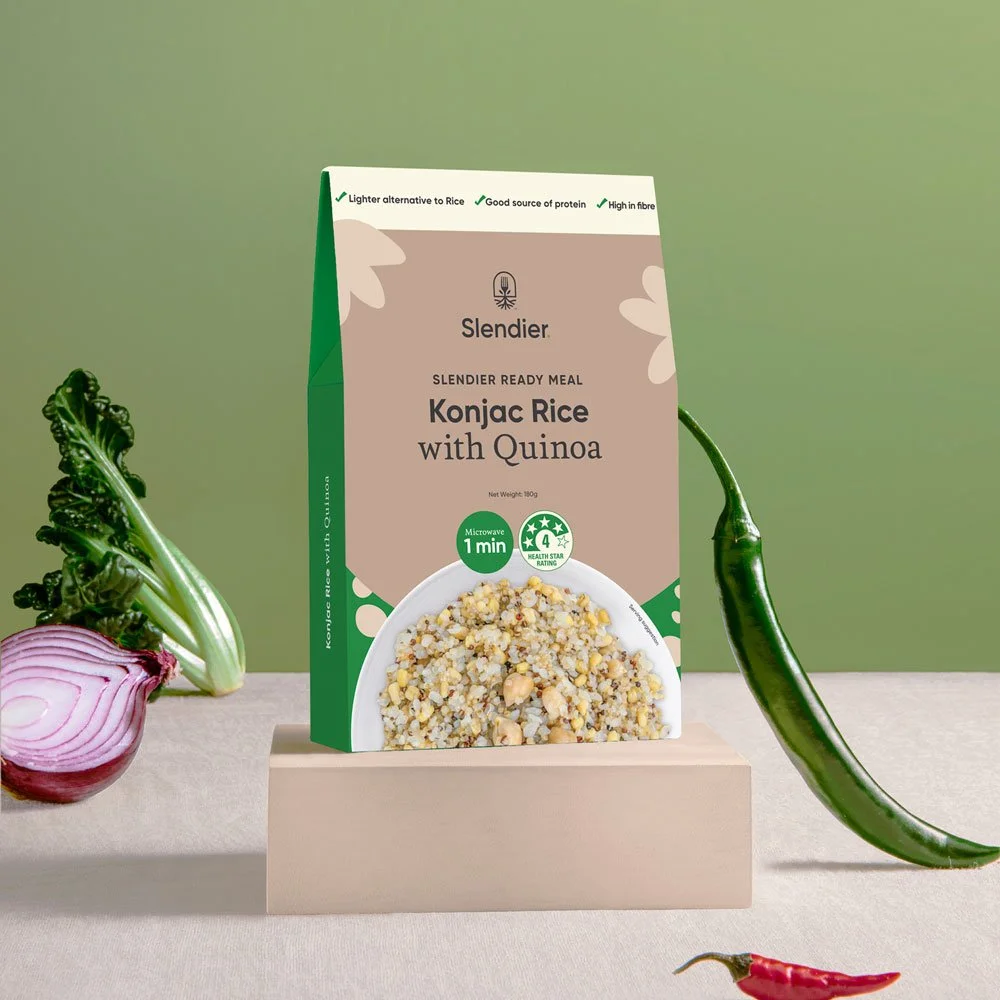 Slendier offers a growing range of products that are healthy and easy to make. The company approached me to analyze and review the packaging to see how we could improve it and make it stand out on the shelves.